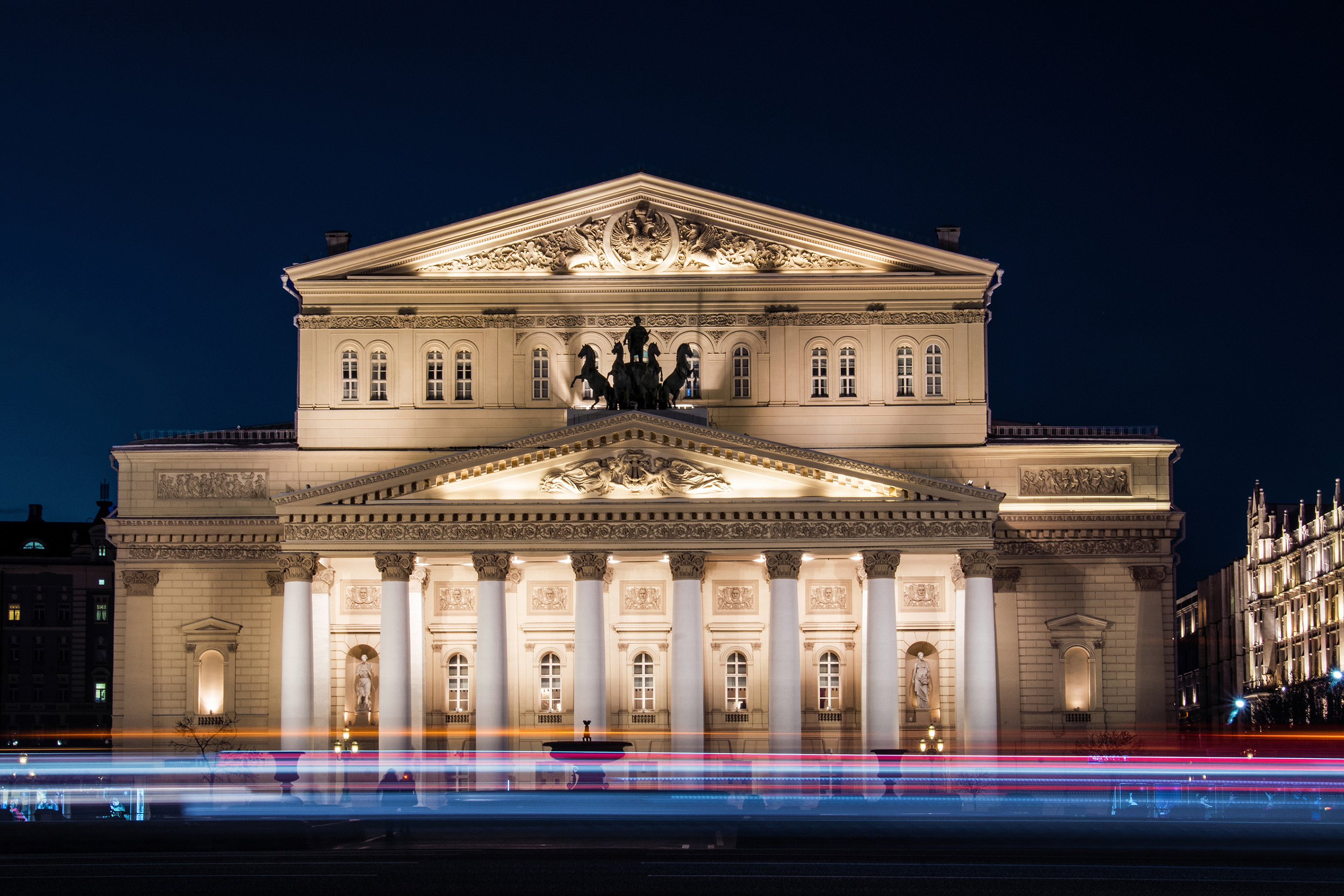 БОЛЬШО́Й ТЕА́ТР России государственный академический (ГАБТ), один из старейших театров страны (Москва). С 1919 академический. История Большого театра восходит к 1776, когда князь П. В. Урусов получил правительственную привилегию «быть содержателем всех театральных в Москве представлений» с обязательством построить каменный театр, «чтобы городу он мог служить украшением, и сверх того, дом для публичных маскарадов, комедий и опер комических». В том же году Урусов привлёк к участию в расходах выходца из Англии М. Медокса. Спектакли шли в Оперном доме на Знаменке, находившемся во владении графа Р. И. Воронцова (в летнее время – в «воксале» во владении графа А. С. Строганова «под Андрониковым монастырём»). Оперные, балетные и драматические спектакли осуществлялись силами актёров и музыкантов, вышедших из театральной труппы Московского университета, крепостных трупп Н. С. Титова и П. В. Урусова.