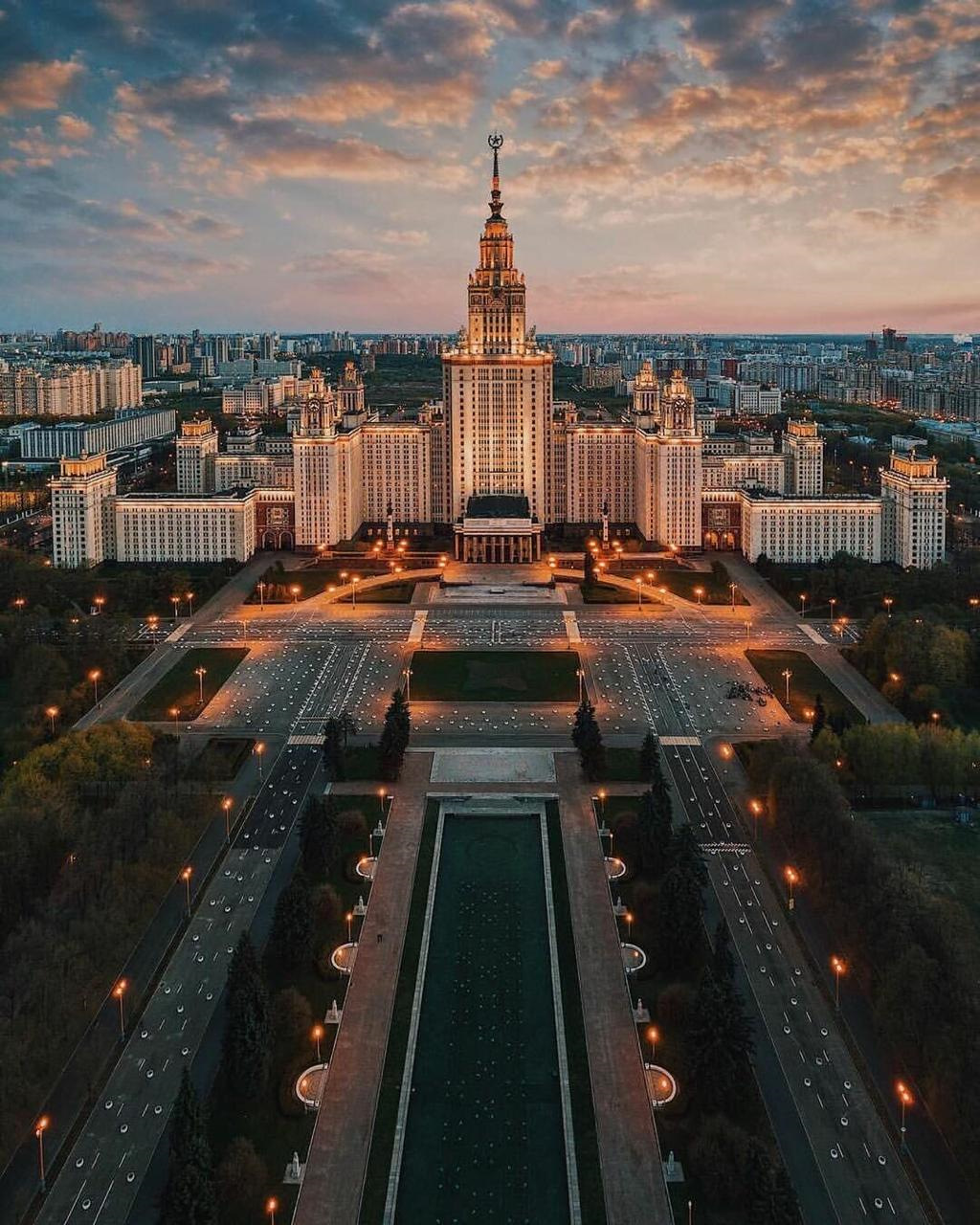 Первоначально ун-т размещался в здании, находившемся на Красной пл., на месте совр. Историч. музея. Спец. здание для Моск. ун-та было построено на углу улиц Большая Никитская (в 1920–1992 ул. Герцена) и Моховой (в 1961–90 часть просп. Маркса) в 1782–93 (классицизм, арх. М. Ф. Казаков). Пострадавшее при пожаре 1812 здание было перестроено в 1817–19 арх. Д. И. Жилярди (барельеф в портике – Г. Т. Замараев), который значительно изменил решение гл. фасада (особенно его центр. части), придав ему облик, характерный для рус. ампира. В 1833–37 на противоположном углу Моховой и Большой Никитской улиц построено (на основе строений усадьбы 18 в.) новое здание ун-та с университетской ц. Мученицы Татианы (поздний классицизм, арх. Е. Д. Тюрин). В 1919 церковь была закрыта; здание использовалось как клуб, студенч. театр (с 1958). В 1995 церковь воссоздана как домовый храм Мученицы Татианы при МГУ. В нач. 20 в. на том же участке построено здание б-ки (эклектика; арх. К. М. Быковский), а также корпуса вдоль Большой Никитской ул. В 1949–70 возведён ансамбль-комплекс ун-та на Ленинских (Воробьёвых) горах. Главное здание (1949–53, архитекторы Л. В. Руднев, С. Е. Чернышёв, П. В. Абросимов, А. Ф. Хряков, инж. В. Н. Насонов) – сложная высотная композиция – включает, наряду с учебными и адм. помещениями, клубную часть (мозаика в актовом зале – худ. П. Д. Корин), общежития, квартиры преподавателей и др. Перед клубной частью – памятник М. В. Ломоносову (бронза, 1953, арх. Н. В. Томский). Университетский комплекс включает (2010) св. 1 тыс. зданий и продолжает развиваться, появляются новые ф-ты, учебные центры и т. д. В янв. 2005 открыто здание Фундам. б-ки МГУ на Ломоносовском просп., в сент. 2007 – Первый учебный корпус гуманитарных ф-тов (историч., филос., гос. управления и политологии), в 2009 завершено строительство Научно-образоват. мед. центра.