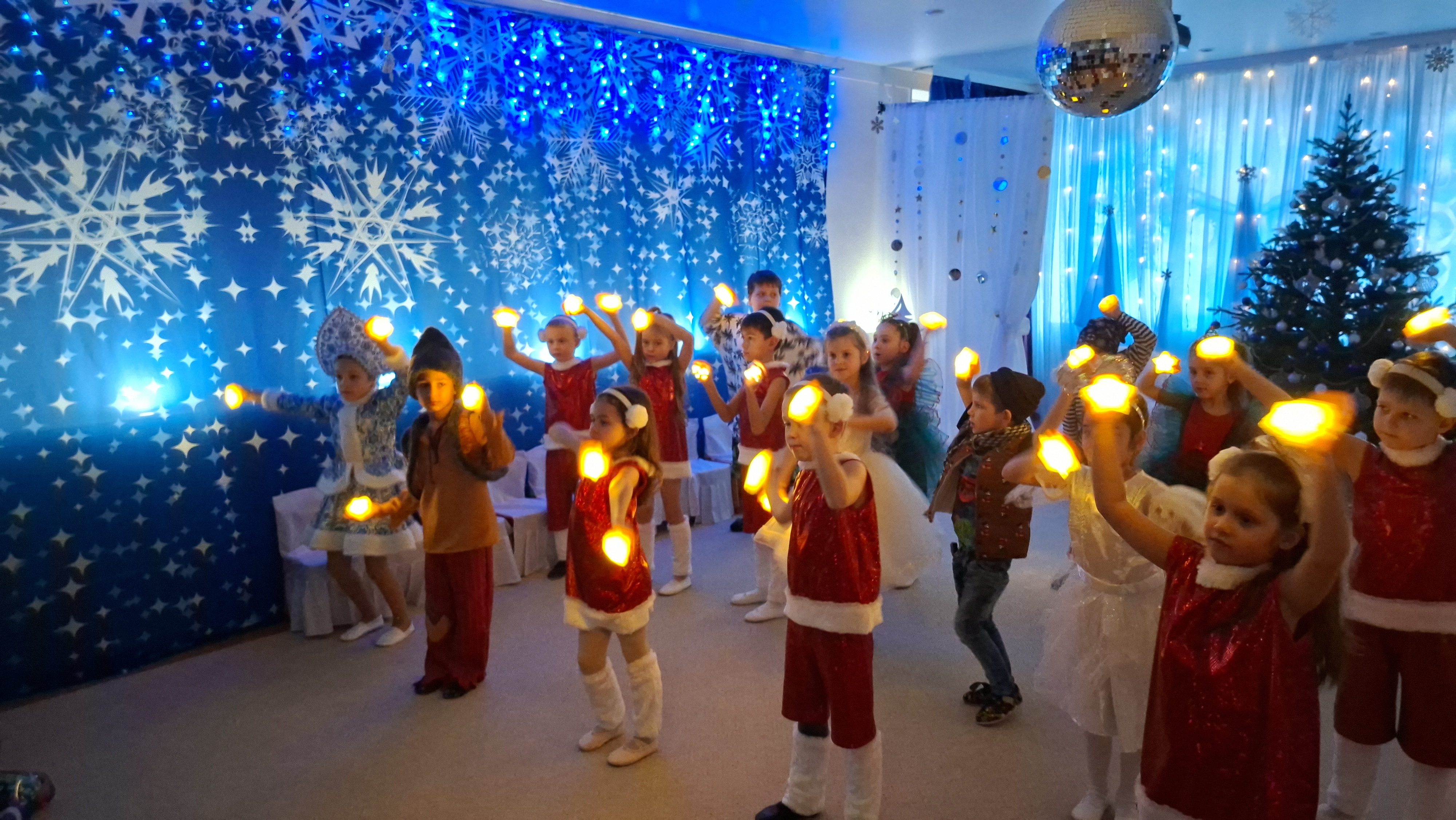Дед Мороз и Снегурочка и множество других сказочных персонажей ожидали детей. Ребята погрузились в мир чудес, приключений, невероятных превращений, сюрпризов и с удовольствием проявляли свои таланты: танцевали, водили хороводы, рассказывали стихи, пели песни. Море радости и эмоций вызвали подарки, врученные детям от самого Дедушки Мороза!